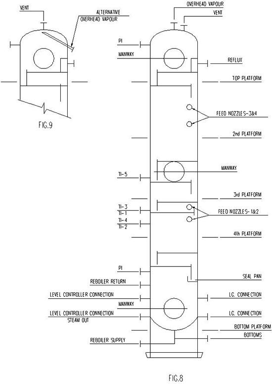 Overhead vapour connection may project vertically from top of the column followed by a 90° bend or it may emerge from the side at 45°, using an integral projection extending up almost to the center top inside the head (see below figure 9).