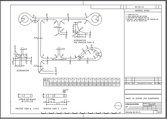 4. The RADII and dimensions of the turnings are based on one way traffic only