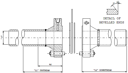 4.3.2 A pair of break-out flange may be installed, without affecting accuracy, at a minimum of 5 diameters downstream from the orifice to allow inspection of the orifice run.